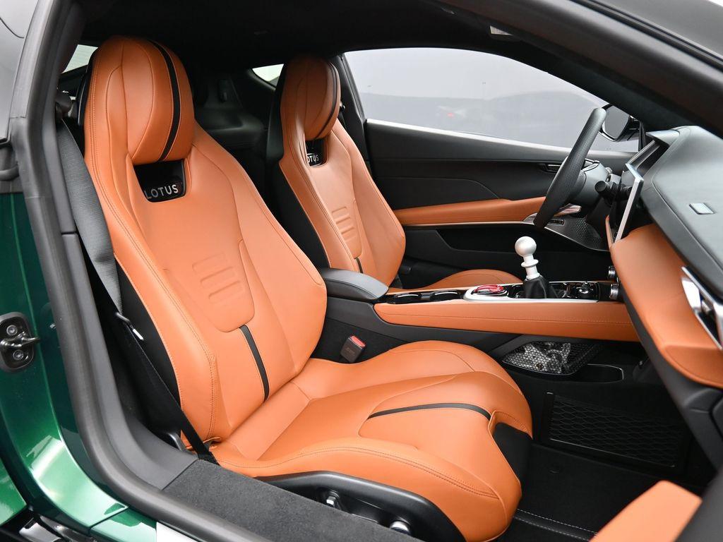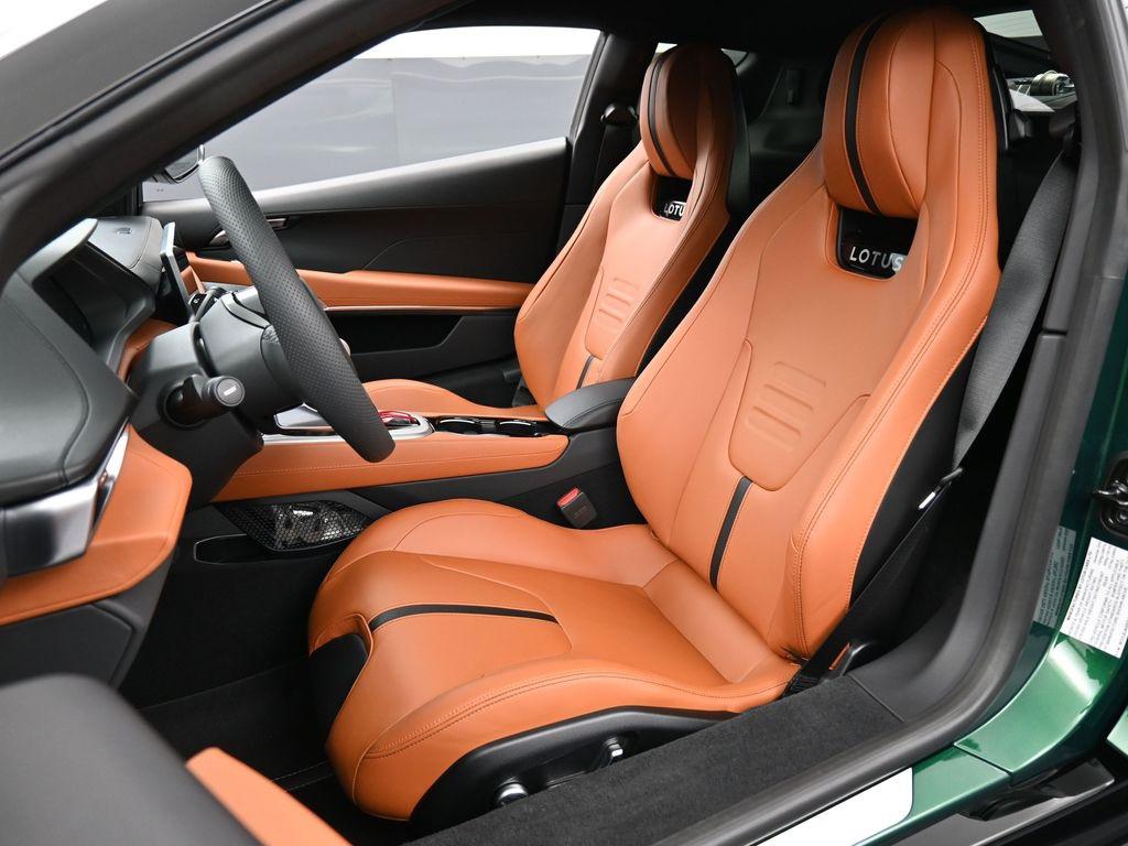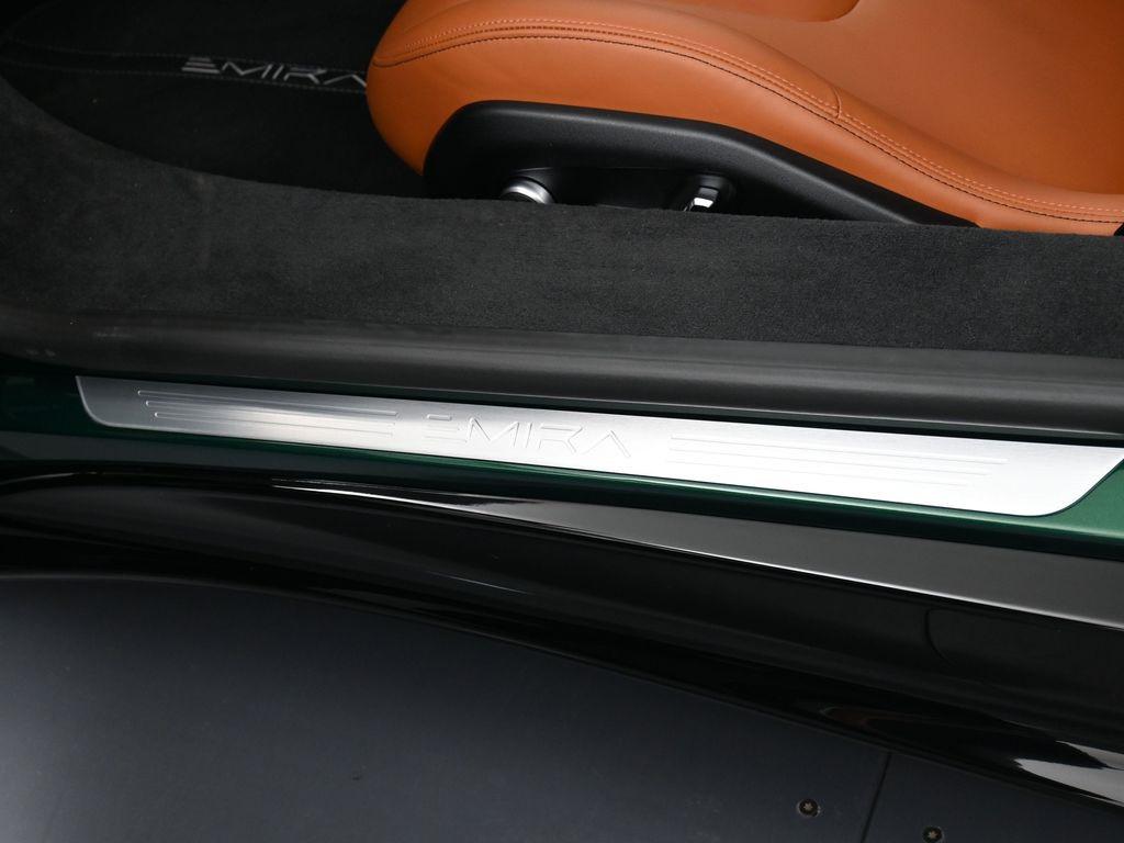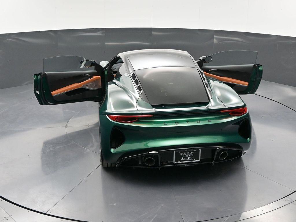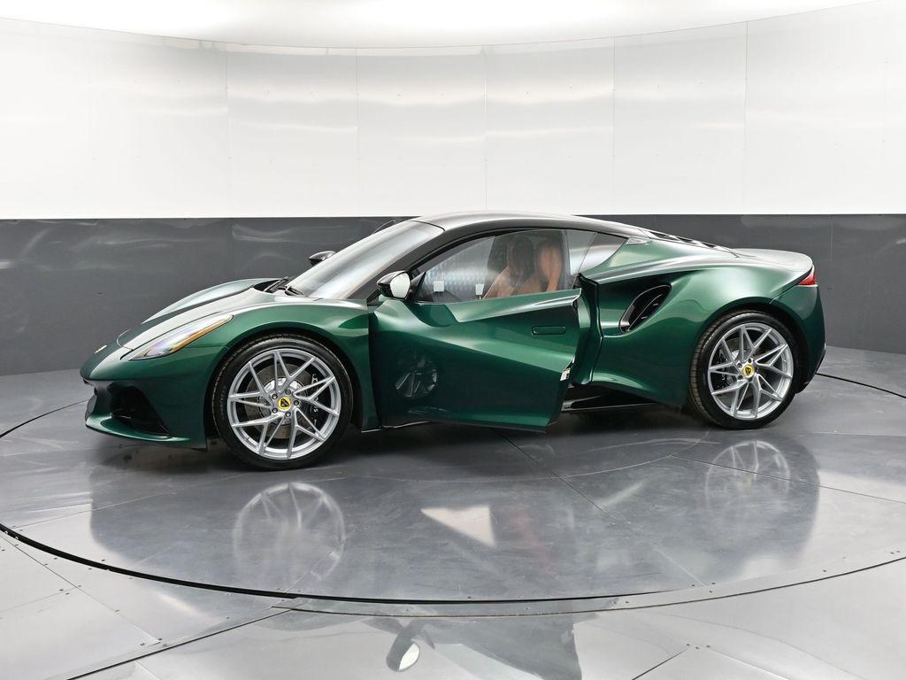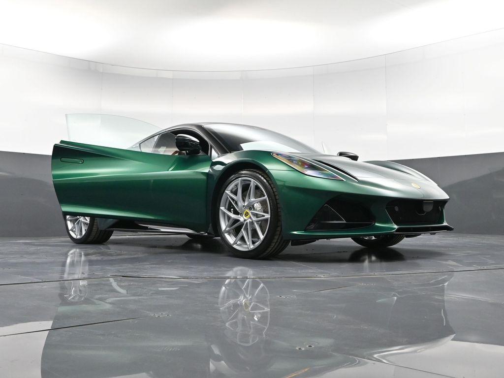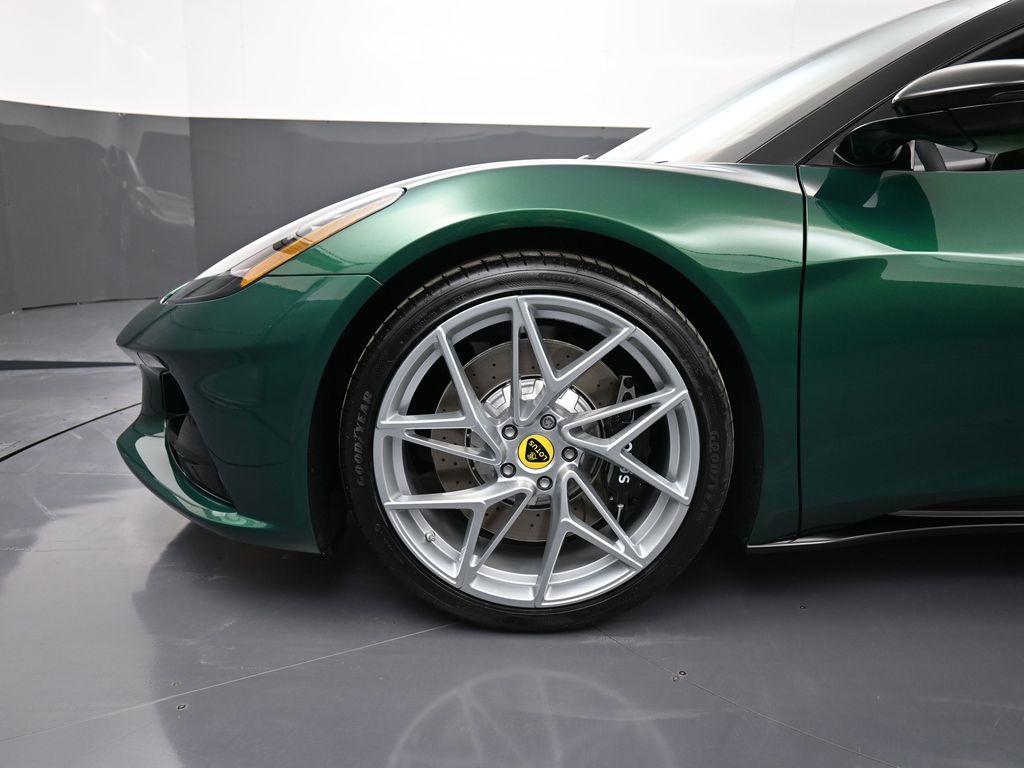 2026 Lotus Emira RWD-Racing Green ($4,500 upgraded paint) / Tan Leather-Sport Suspension-Full Black Pack-Black Brake Calipers-20 Inch Forged Ultra Lightweight Gloss Silver Prism Wheels-Black leather Steering Wheel-Alcantara Headliner-Black Seat Belt-Yellow and Black Nose Badge and Center Caps-KEF Premium Audio-Goodyear Eagle F1 SuperSportRecent Arrival!