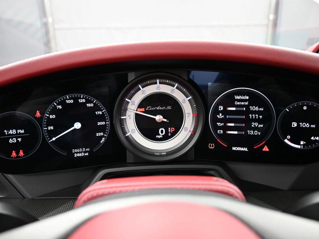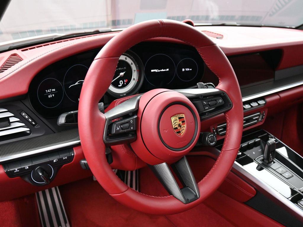 Recent Arrival! Thank you for your interest in another Manhattan Motorcars Pre Owned vehicle!2023 Porsche 911 Turbo S-Leather Interior in Bordeaux Red with Chalk Stitching-Carrara White Metallic-Carbon Fiber Roof-Exterior Mirror Upper Housing in Carbon Fiber and Lower Trim/Base in High Gloss Black-Window Trim in High Gloss Black-Rear Side Air Intakes in High Gloss Black-Under Door Puddle Light Projectors-Model Designation on Doors in Red-Motorsport Stripe Decal on Top in Red-Engine Compartment Cover in Titanium Grey-""PORSCHE"" Logo on Rear in High Gloss Black-Model Designation on Rear in High Gloss Black-Exclusive Design Fuel Cap-Rear Lid Grille Vertical Slat Inlays in Exterior Color-PASM Sport Suspension (Lowered 10mm)-Front Axle Lift System-Sport Exhaust System incl. Tailpipes in Black-Power Steering Plus-Porsche Ceramic Composite Brakes (PCCB) with Calipers in High Gloss Black-Ionizer-Ambient Lighting-Ventilated Seats (Front)-Storage Package-Smoking Package-Seat Belts in Bordeaux Red-Central Tachometer in White-Sport Chrono Stopwatch Dial in White-Upper Interior Mirror Panel in Leather - Bordeaux Red-Fuse Box Covers in Leather - Bordeaux Red-Center Console Lid with Porsche Crest-Steering Column Casing in Leather i.c.w. Memory Package-Air Vent Surround in Leather and Air Vent Slats Painted - Bordeaux Red-Inner Door-Sill Guards in Leather - Bordeaux Red-Sport Seats Plus Backrest Shells in Leather with Matte Carbon Fiber Inlay-Vehicle Keys Painted incl. One Key Pouch in Race-Tex - Bordeaux Red-Heated GT Sport Steering Wheel with Trim in Matte Carbon Fiber-Door-Sill Guards in Matte Carbon Fiber, Illuminated-PDK Gear Selector in Aluminum-Pedals and Footrest in Aluminum-Burmester High-End Surround Sound System-LED-Matrix Design Headlights in Black incl. Porsche Dynamic Light System Plus (PDLS+)-Exclusive Design Taillights-Surround View-Lane Change Assist (LCA)ABS brakes, Alloy wheels, Electronic Stability Control, Front dual zone A/C, Heated door mirrors, Heated front seats, Illuminated entry, Low tire pressure warning, Navigation System, Porsche Communication Management, Remote keyless entry, Traction control.Clean CARFAX. Odometer is 4408 miles below market average!Porsche Approved Certified Pre-Owned Details: * Limited Warranty: 24 Month/Unlimited Mile beginning after new car warranty expires or from certified purchase date * Multipoint Point Inspection * Vehicle History * Includes Trip Interruption reimbursement * Roadside Assistance * Transferable Warranty * Warranty Deductible: $0